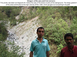 On 02May2010, I was invited by village people of the area to have a detailed look at the area again. What we did was walked all the way form the top (GPS Waypoint 41) to the base of the natural rivulet (GPS Waypoint 47) which is the cause of the instability in the area. During the course of the 5hr walk we interacted with affected people of the area and saw what has now become a familiar sight - farmland which has disappeared, homes which are cracked and despair written on the faces of people.